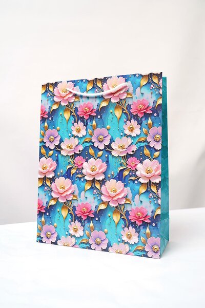 Archies Blue Floral Paper Bag - L Bag