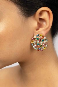 Bacsktage Gold & Multi Stones Stud Earrings