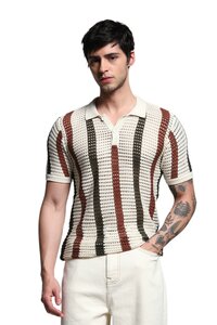 Jack & Jones Cream Striped Knitted Polo