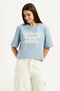Levi's Women's Typographic Print Light Blue Relaxed Fit T-shirt