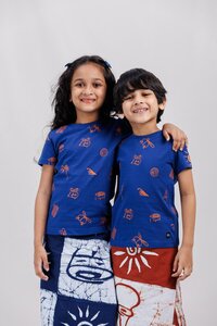 Luv Sl Kids Unisex Tshirts Navy Blue All Over Print Design