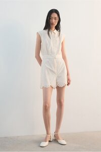 Mango Beige Embroidered Cut-Out Romper