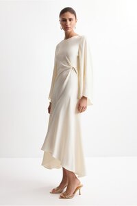 Mango Beige Ruched Satin Dress