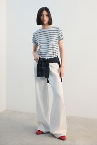 Mango Blue Striped Cotton T-Shirt