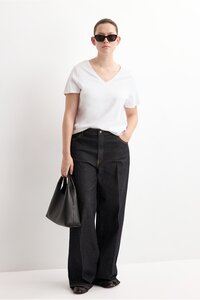 Mango White V-Neck Cotton T-Shirt