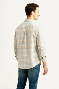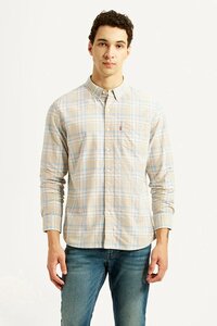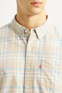Men's Checkered Beige Slim Fit Oxford Shirt