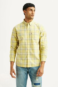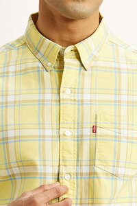 Men's Checkered Yellow Slim Fit Oxford Shirt