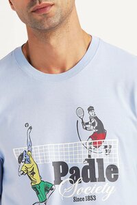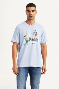 Men's Graphic Print Light Blue Crew Neck T-shirt