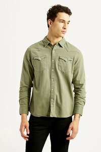 Men's Solid Olive Green Slim Fit Shirt