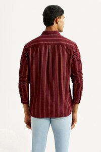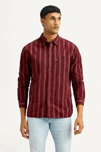 Men's Striped Maroon Slim Fit Shirt