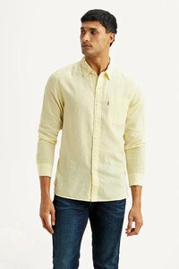 Levi's Men's Striped Yellow Slim Fit Linen Shirt