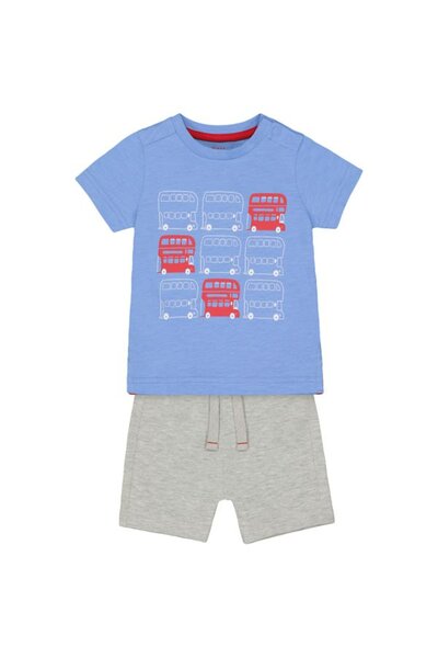 Mothercare Boys' Blue Double-Decker Bus And Grey Shorts Set