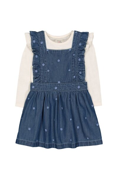 Mothercare Girls White & Denim Floral All Over Print Dress