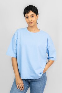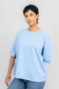 Odel Light Blue Back Printed Dropped Shoulder Oversized Tshirt