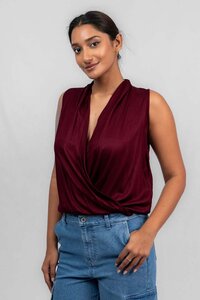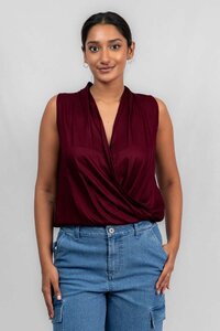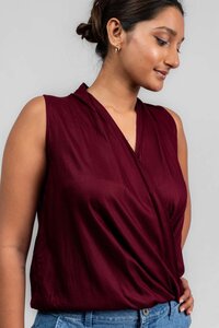 Odel Maroon V Neck Asymmetrical Sleeveless Top