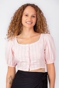 Odel Peach Princess Seam Round Neck Short Sleeve Top