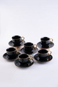 Odel Tea Set Black With Gold Handle 12Pcs