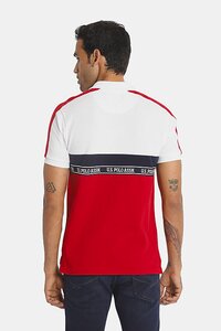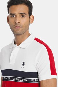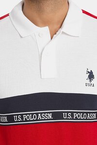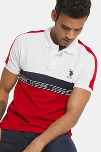 U.S. Polo Men White And Red Brand Tape Colour Block Polo Shirt