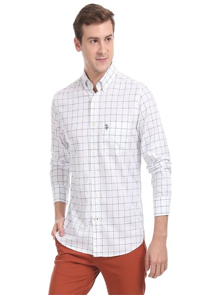 U.S. Polo Men White Button Down Check Casual Shirt