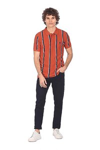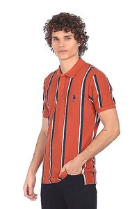 US Polo Men Red Short Sleeve Striped Polo Shirt