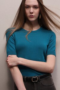 Vero Moda Teal Blue Knitted Short Sleeves Top