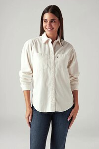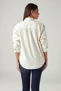 Women's Solid Off White Spread Collar Shirt