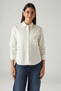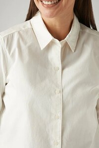 Women's Solid Off White Spread Collar Shirt