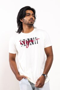 Wyos Off White Regular Fit Printed T-Shirt